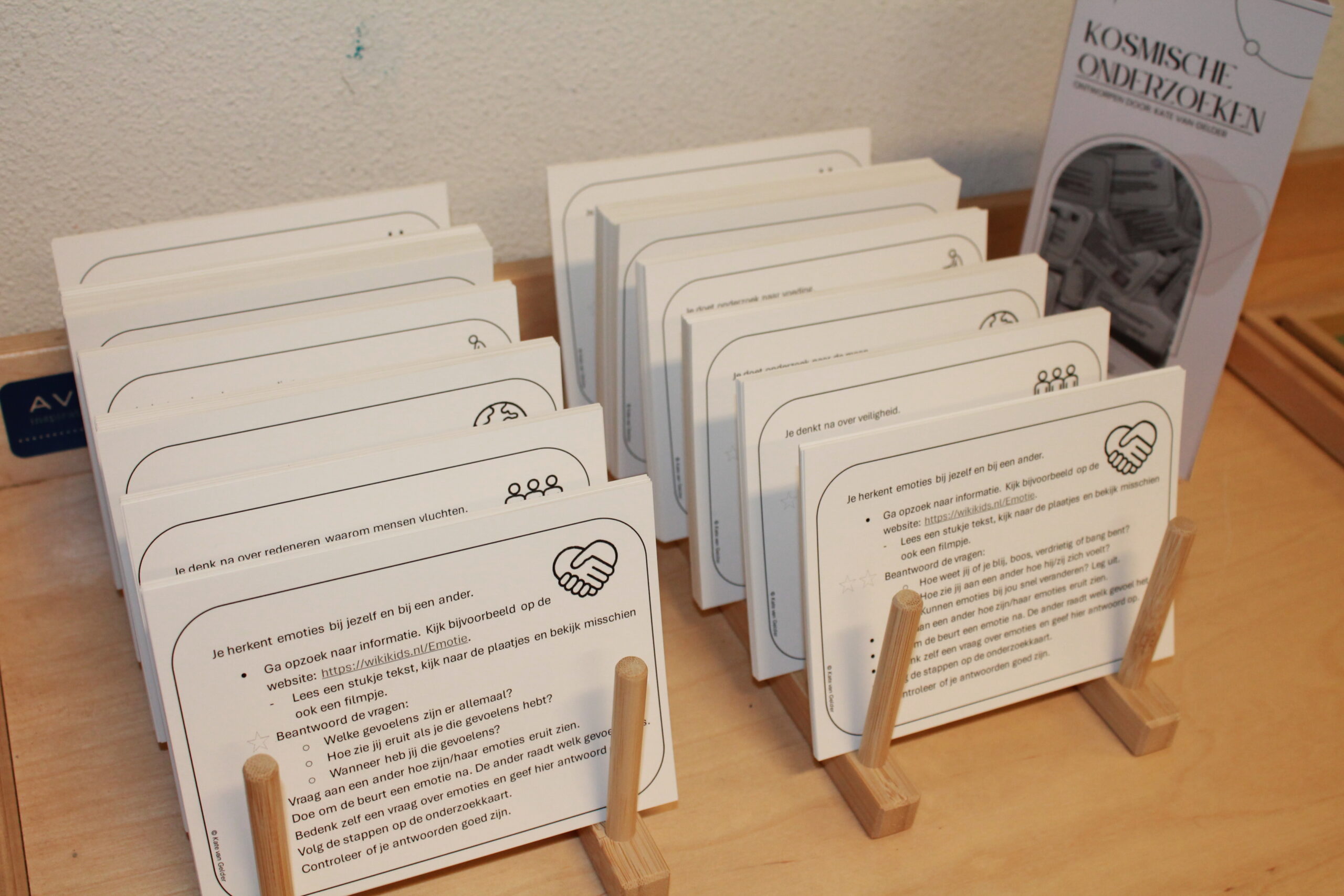 De Kosmische Onderzoeken zijn ontwikkeld door Kate van Gelder. Met de Kosmische Onderzoeken wil zij leerkrachten inspireren om kinderen de kans te geven om op ontdekkingsreis te gaan. De vragen op de kaarten helpen kinderen gericht op onderzoek te gaan, bij alle stappen worden de kinderen zorgvuldig aan de hand genomen.